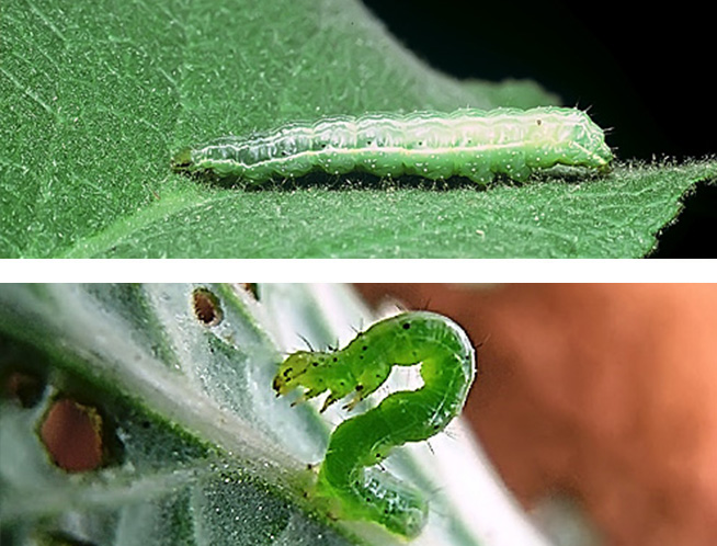 Las larvas jóvenes se alimentan del parénquima en el envés de las
