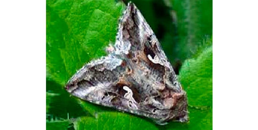 Las alas posteriores de color marrón grisáceo claro, con una banda marronácea ancha a lo largo del margen.