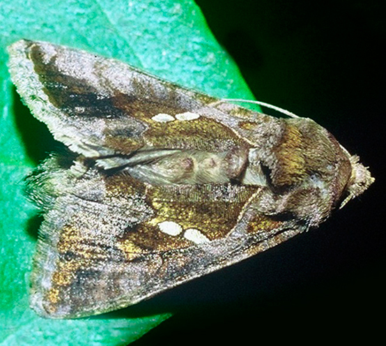 Fácilmente reconocible por sus dos manchas plateadas y color dorado.