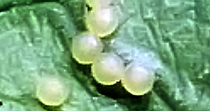 Puestos individualmente o en pequeños grupos, de color blanco a verde pálido y brillantes.