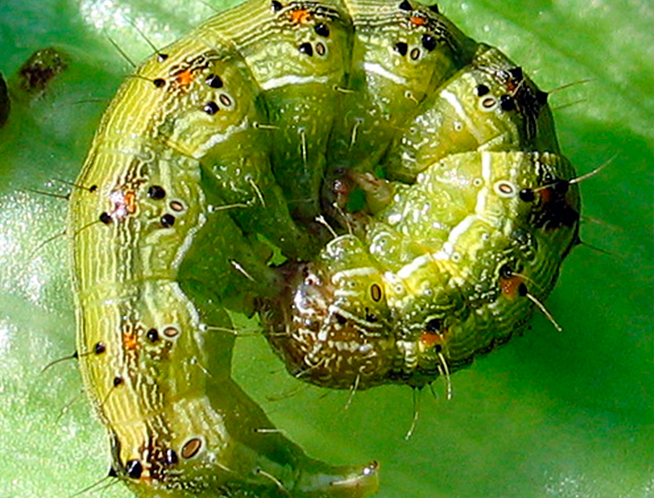 Las orugas se alimentan de 3 a 4 semanas antes de pupar en el suelo. Una generación se completa en un mes durante el verano. Las orugas son agresivas, ocasionalmente carnívoras e incluso caníbales. Las voraces orugas se pueden alimentar de hojas y tallos, pero muestran una fuerte preferencia por los órganos reproductivos, como yemas, inflorescencias, vainas, cápsulas, frutos, etc.
