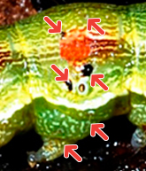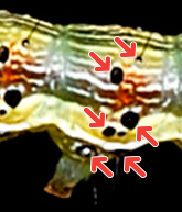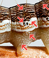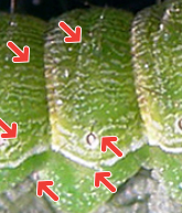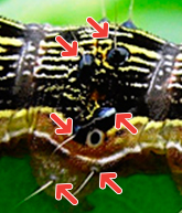Sedas con tubérculos. En cada segmento abdominal: dos subdorsales,dos detrás y encima del espiráculo, y dos ventrales.