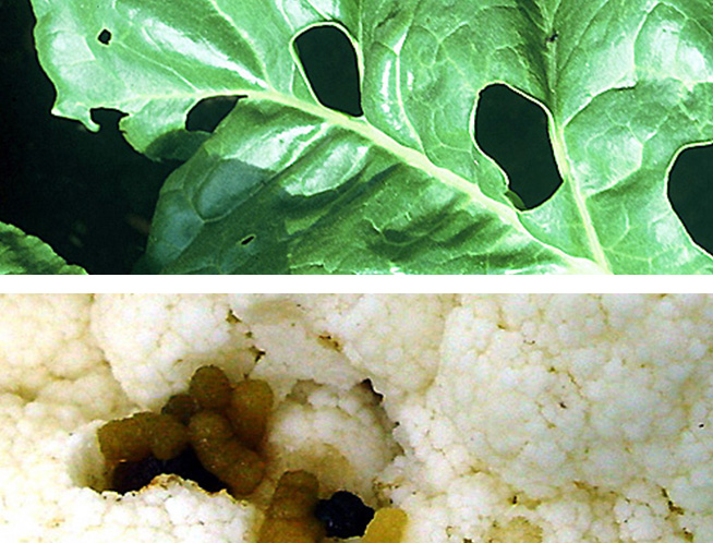 Las larvas jóvenes se alimentan de las hojas exteriores,