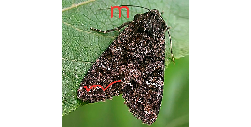 Las alas posteriores de color marrón grisáceo claro, con una banda marronácea ancha a lo largo del margen.