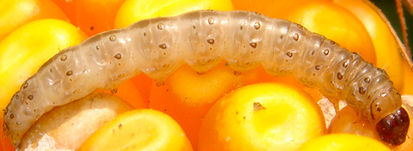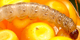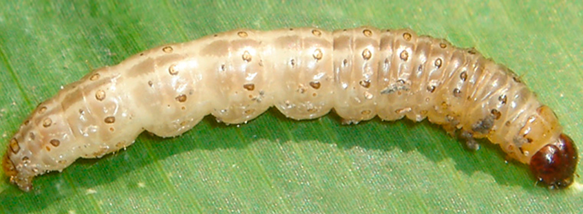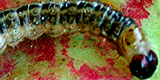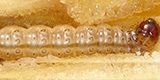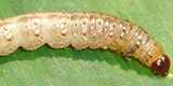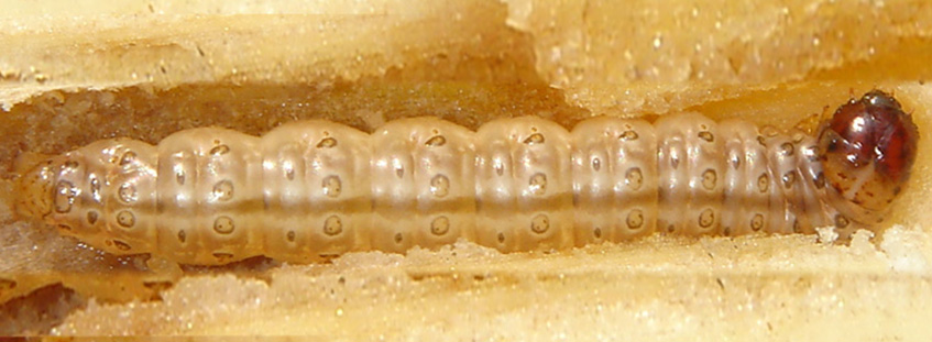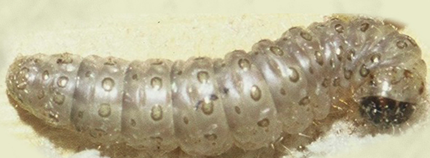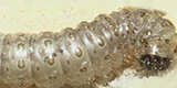 Cuerpo desde gris claro, pasando por gris rosáceo, hasta marrón claro. Normalmente presenta una banda dorsal ancha. En cada lado de cada segmento tiene dos sedas (dorsal y subdorsal), con tubérculos claros de borde oscuro.