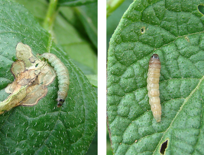 La fecundidad media es de 150-200 huevos. Hojas y tubérculos son dañados por las orguas, que minan hojas y tallos, realizando túneles en los tubérculos, que llenan de excrementos.
