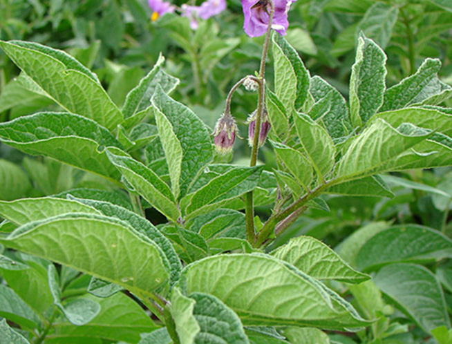 Limitado a solanáceas, principalmente patata, pero también tabaco, berenjena, tomate y pimiento; y en malas hierbas como Datura stramonium.