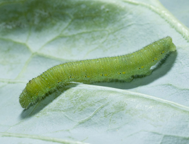 Ataca a las especies vegetales pertenecientes a la familia de las crucíferas y plantas relacionadas, incluyendo brócoli, coles de Bruselas, col, coliflor, repollo, rábano, etc.