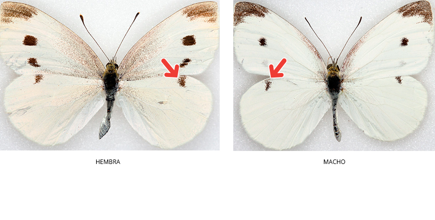 Alas posteriores con una mancha negra difusa en el margen anterior.
