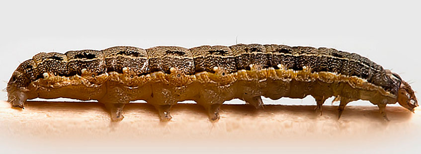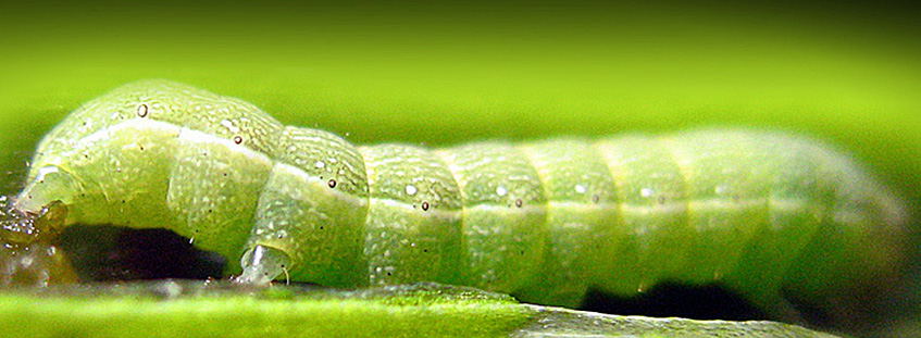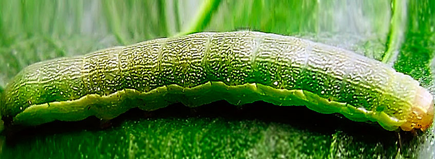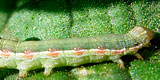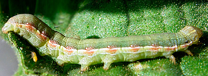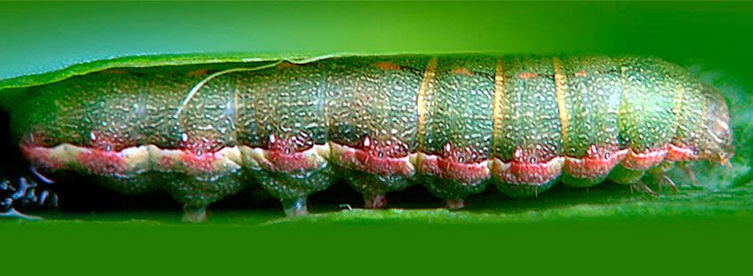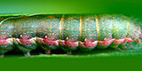 Normalmente verdes, a veces con manchas rosadas o anaranjadas alrededor de los espiráculos. Existen formas más oscuras, con manchas subdorsales.